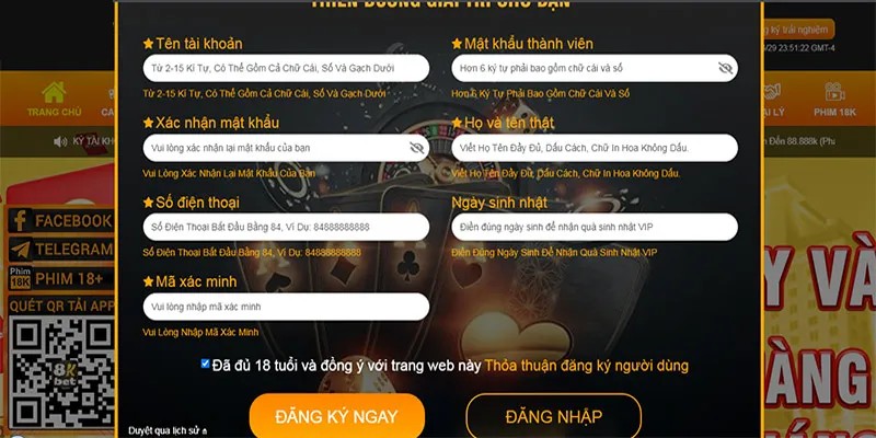 Sau đó, trên màn hình sẽ hiện lên form thông tin người chơi cần điền theo yêu cầu của nhà cái. Những thông tin bạn cần điền bào gồm: